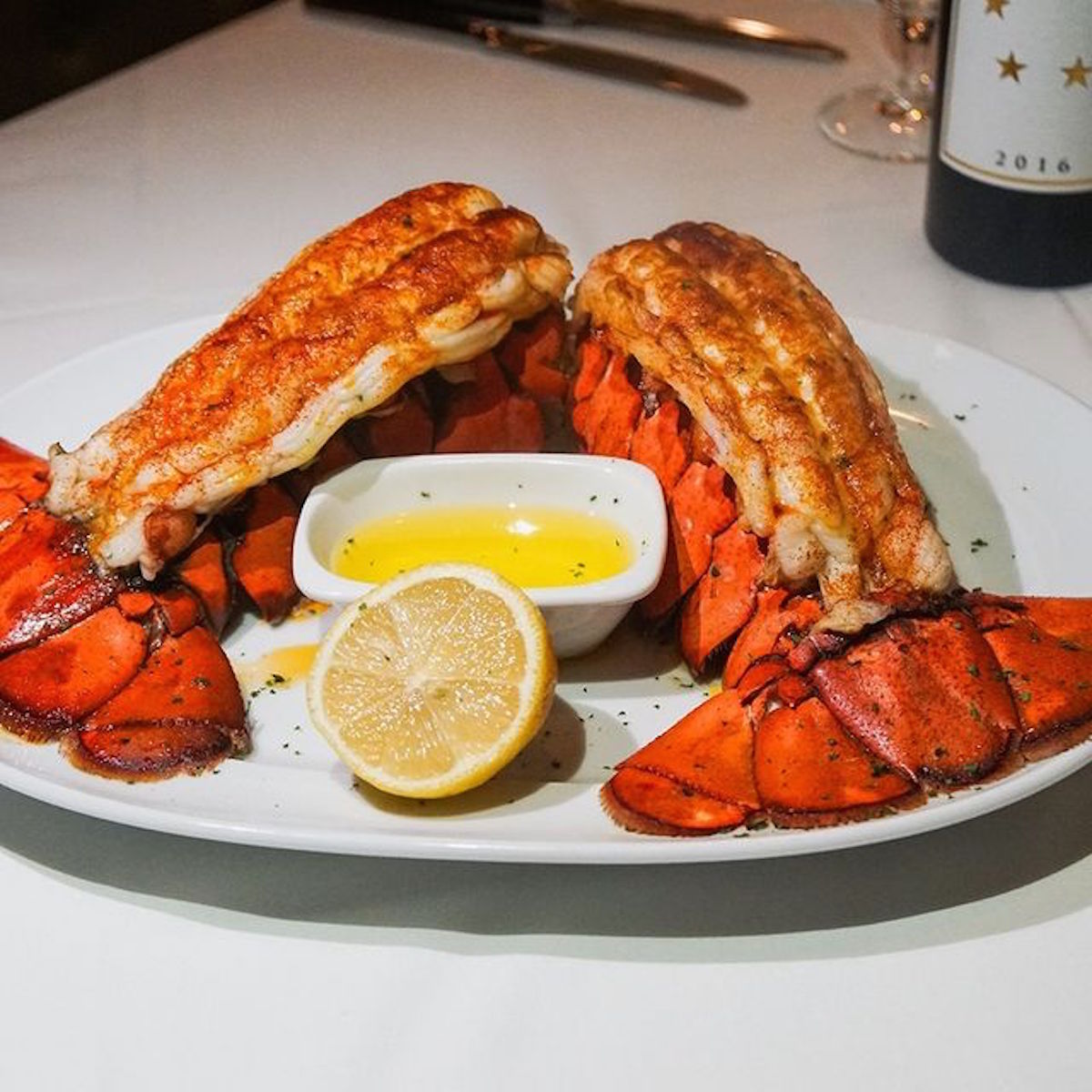 The raw bar includes colossal shrimp, Alaskan king crab, Maine lobster and East and West Coast oysters.