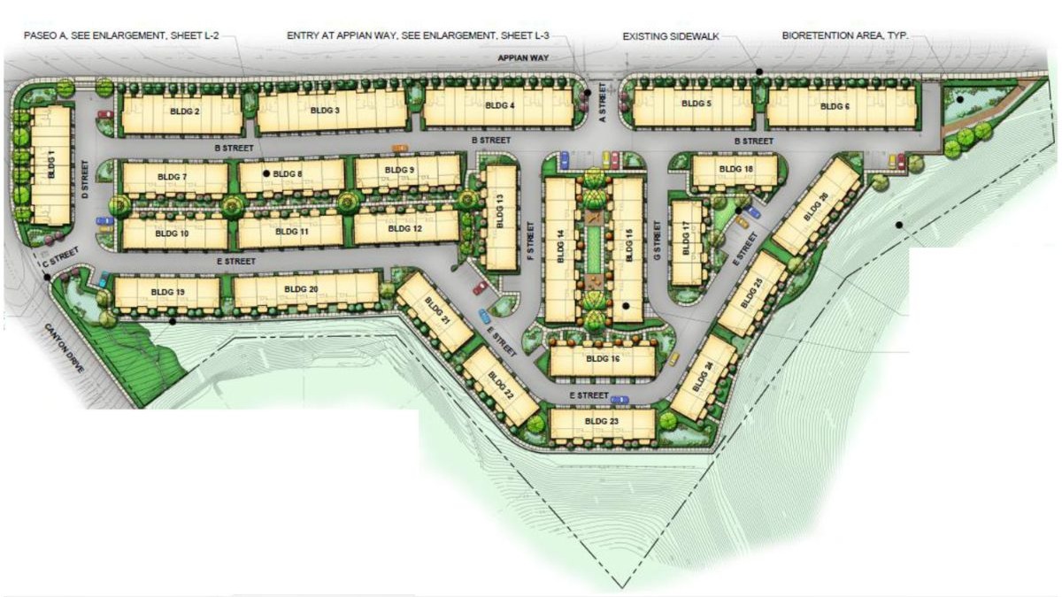 The developer, DeNova Homes, has put out an approval for the transformation of Appian Way since 2021. The developer submitted a plan to demolish the existing parking area and the former Doctor’s Medical Center site and construct a new housing unit.