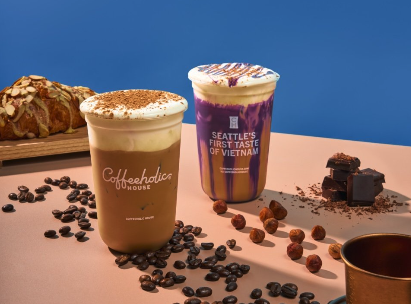 While there are in-person locations, customers can also order online and either pick up their products or have them shipped. Online, they sell coffeeholic dream, their signature Vietnamese coffee with cheese foam and hazelnut syrup, tiramisu egg coffee, dark night latte, a purple haze ube latte and much more. Food at the locations include Vietnamese breadsticks, strawberry sandos and other bakery items.