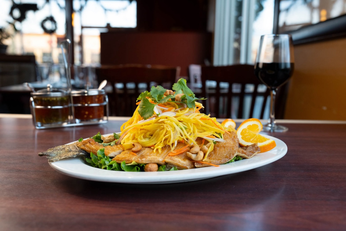 The Thai-inspired restaurant offers a broad menu of appetizers, soups, salads, noodles, curries and fried rice, all customizable with chicken, pork, tofu, beef, prawns, salmon or crab. Signature entrees include mango trout and Thai sweet and sour, as well as spiced dishes such as swimming angel, kee-mao, phad-khing (ginger or chili paste) and holy (Thai basil), each served with a choice of protein.