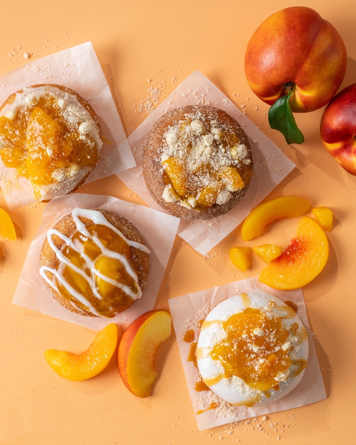 Duck Donuts is known for adventurous donut flavors like French Toast, Maple Bacon, and Peanut Butter Paradise. It also features seasonal varieties. This summer, peach is on the menu, with Peaches & Cream, Peach Tart, Peach Cobbler, and Peach Pie varieties. There’s also a nautical them, with flavors like Overboard, High Tide, and the Sandbar, plus—gasp— Shark Attack and Shark Bite.