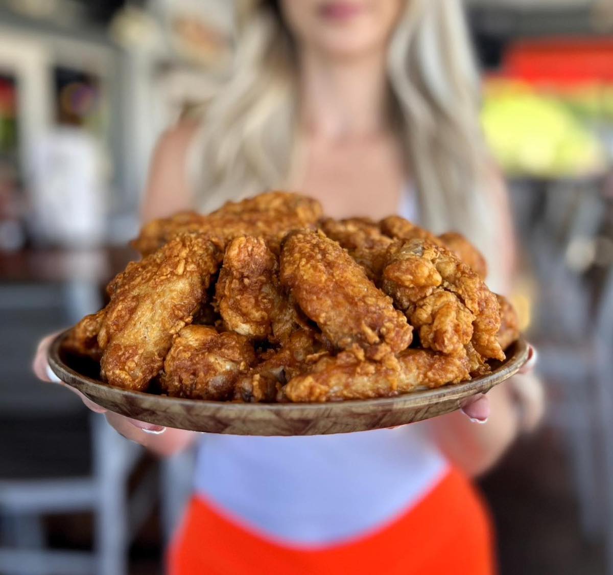 Hooters Original Wings come with sauce and rub varieties like Honey BBQ, Honey Thai Chili Pepper, Daytona Beach (Spicy BBQ with a Floridian Heat), Caribbean Jerk Rub, and Paul Prudhomme’s Blackened Rub.