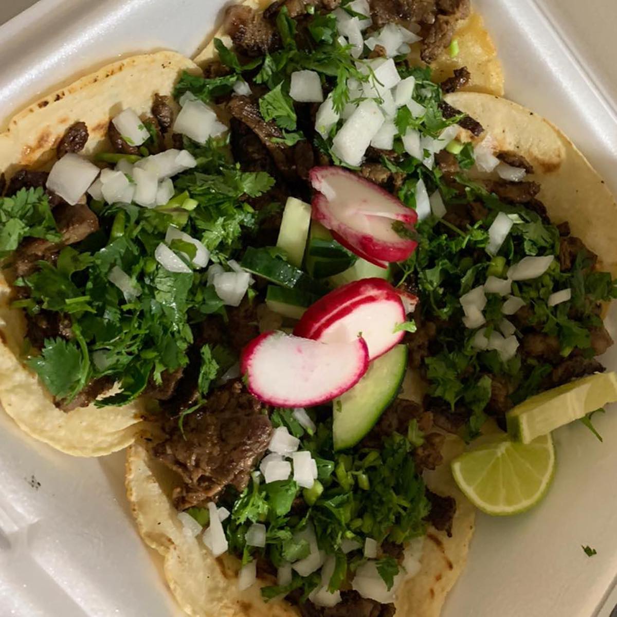 Taqueria Zafritas’s menu features tacos with protein choices that include Asada, Pollo, Pastor, and Chorizo. Other dishes include Tostadas, Chilies Rellenos, Flautas, Quesadillas, and Nachos.