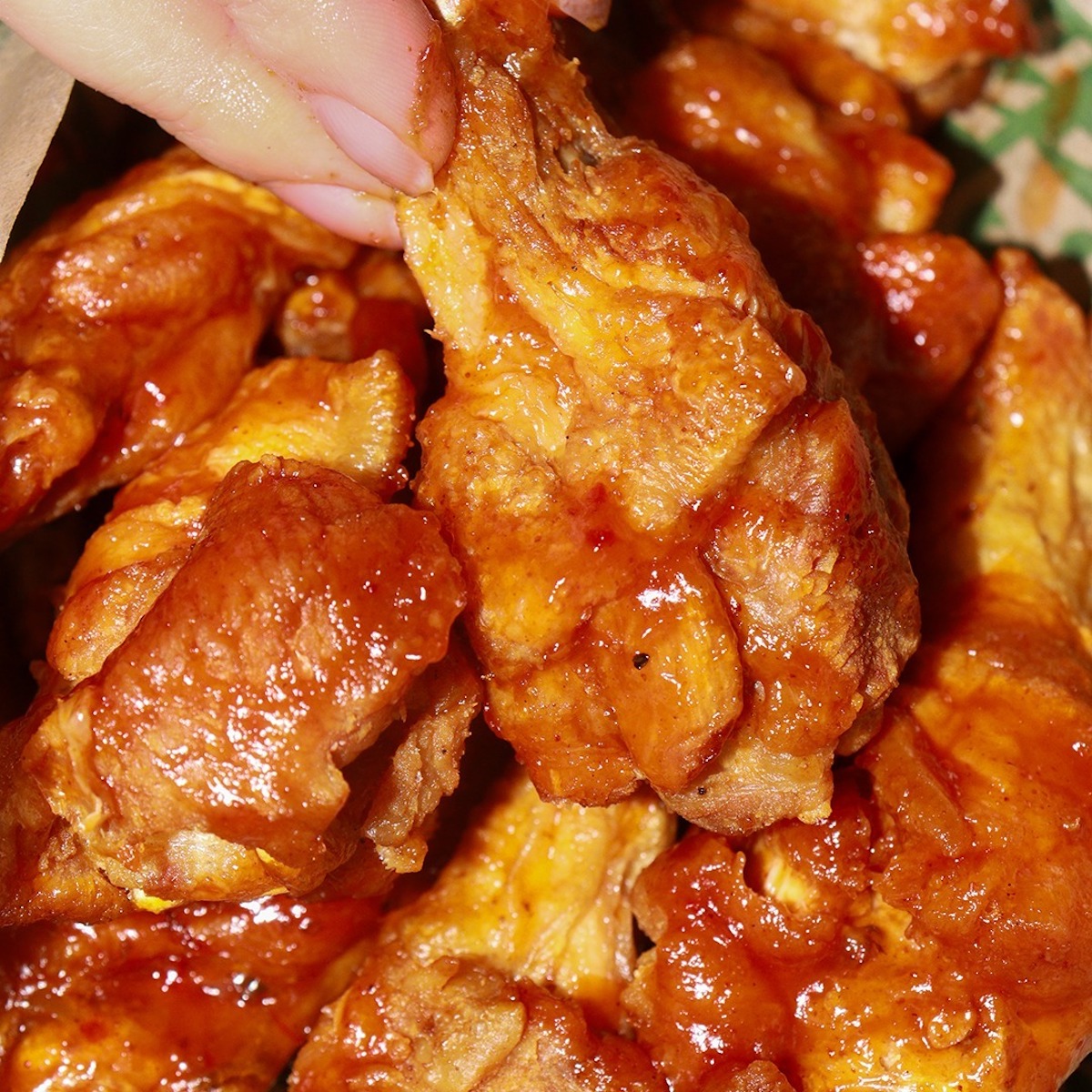 Wingstop’s menu features buffalo wings, thighs, and tenders served up with a wide range of sauces. These sauces include spicy varieties like Atomic, Spicy Korean Q, and Mango Habanero, along with non-spicy flavor profiles like Garlic Parmesan and Lemon Pepper. Sides include fries, Cajun Fried Corn, and Veggie Sticks.